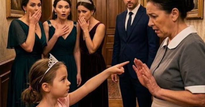 In the center of the marble hall stood his six-year-old daughter, Sophie. She wore a pale blue dress and clutched her stuffed rabbit tightly to her chest. Calmly, the little girl lifted her hand and pointed directly at Anna — the housemaid.