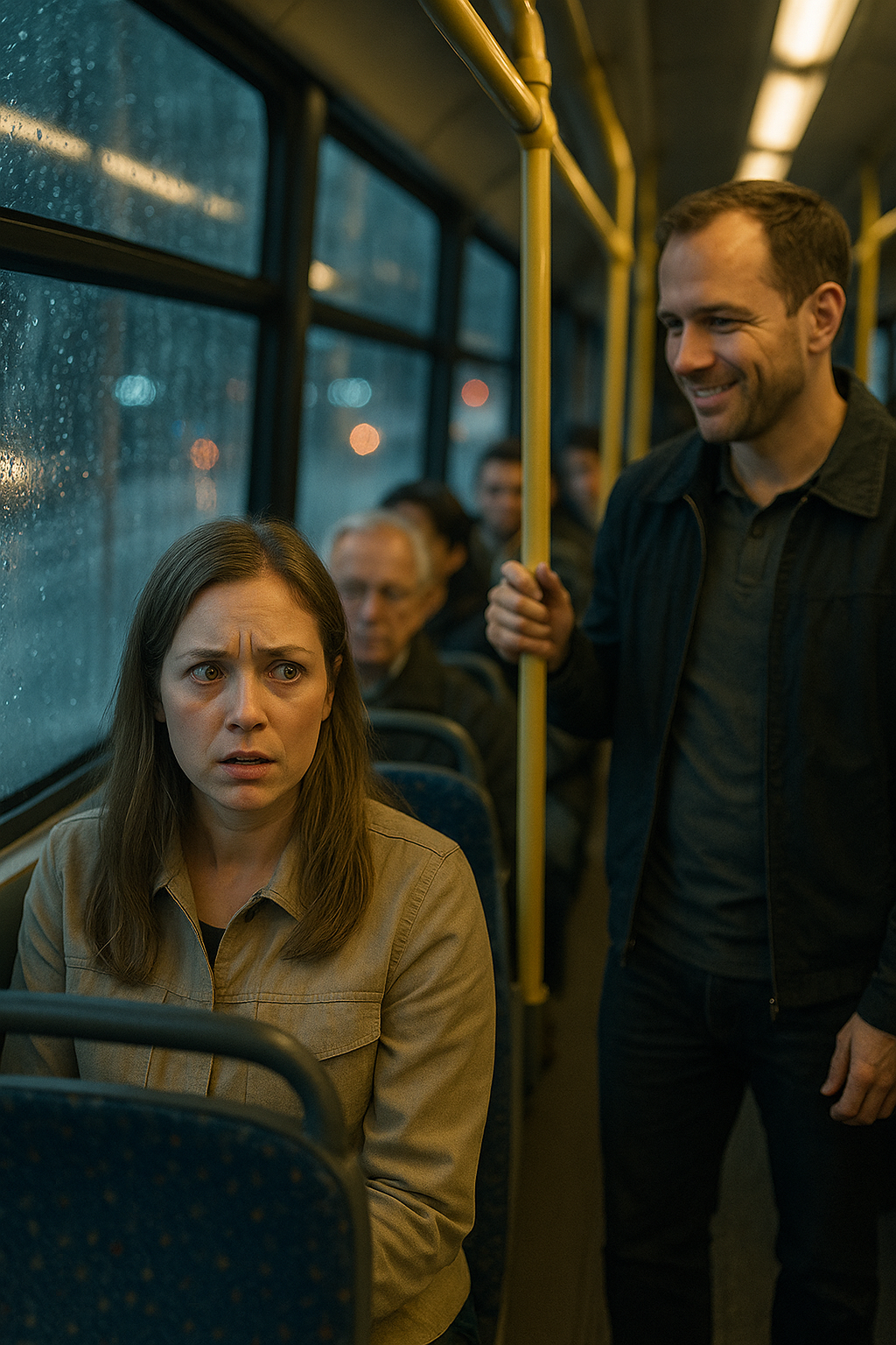 It was a rainy evening when Claire boarded the bus home from work. The windows were streaked with water, the seats damp from umbrellas, and the city outside blurred into gray. She slid into a seat near the back, pulling her coat tighter, lost in her thoughts.