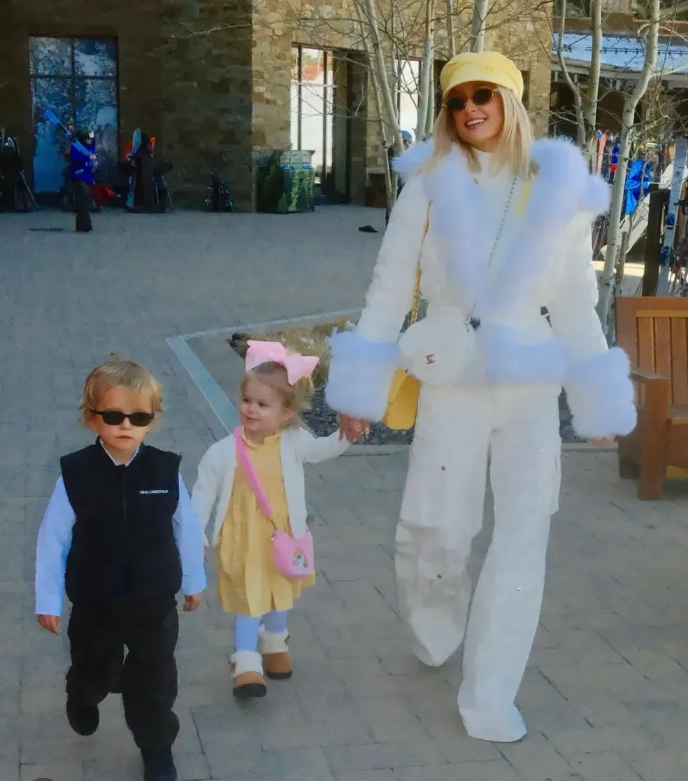 Paris is seen posing in colorful ski outfits, holding her children, smiling for the camera, and capturing moments that look straight out of a winter postcard. The setting is calm, snowy, almost cinematic—but it’s the contrast that people noticed most.