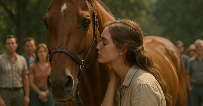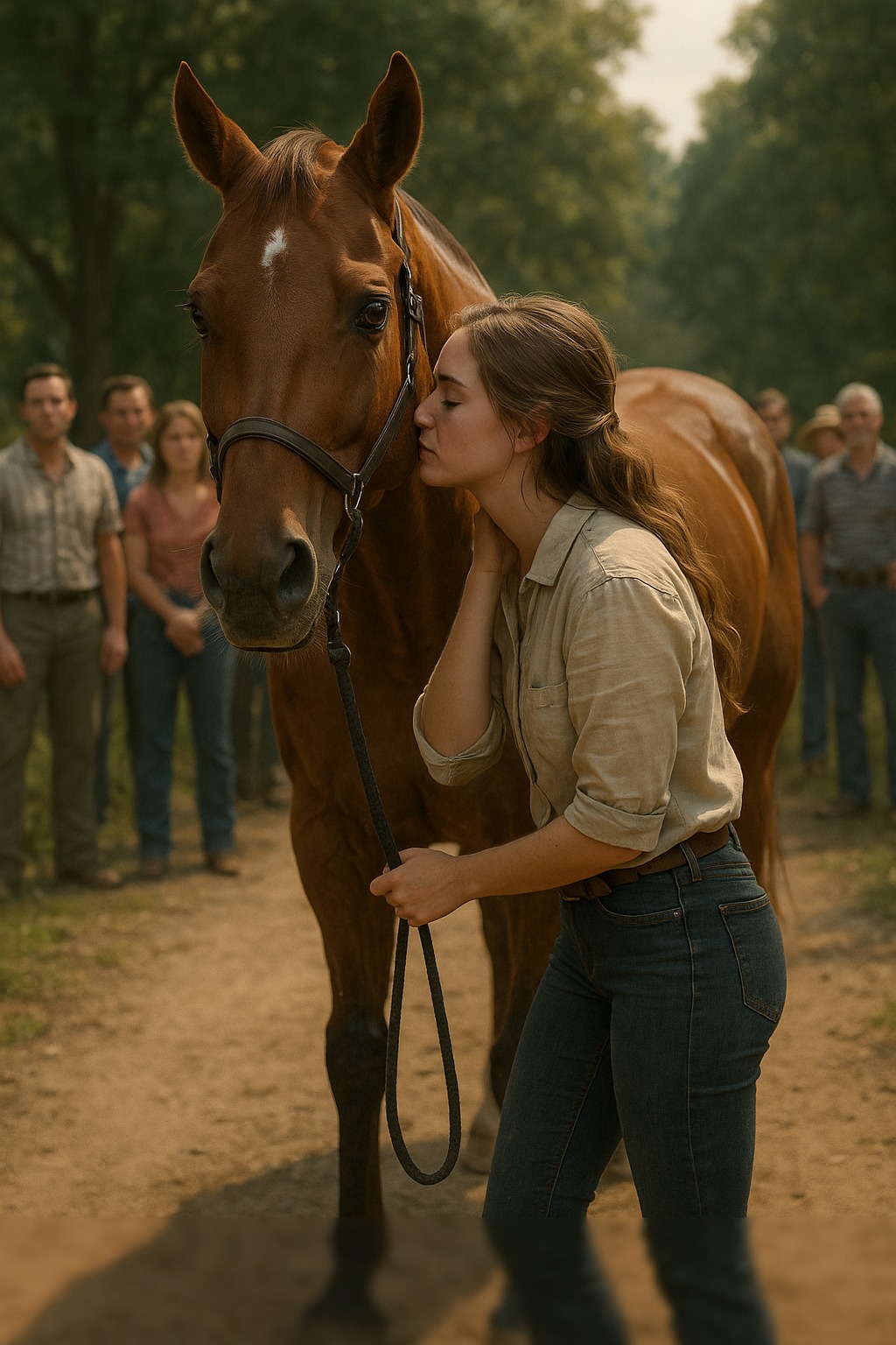 The crowd was restless. Dozens of people stood waiting in the afternoon sun, watching as a young woman tugged gently at the reins of a powerful chestnut horse. The animal stood frozen in the middle of the dirt path, ears back, muscles tense, refusing to take a single step forward.