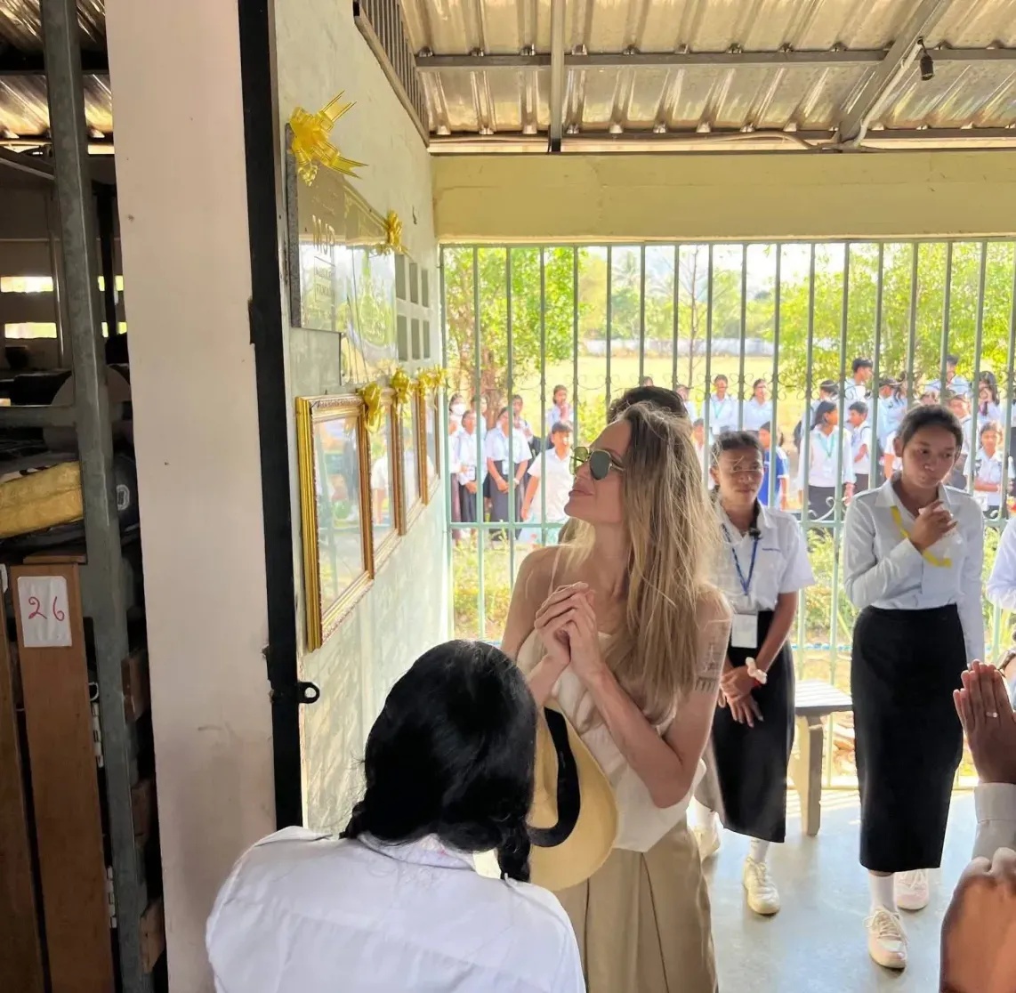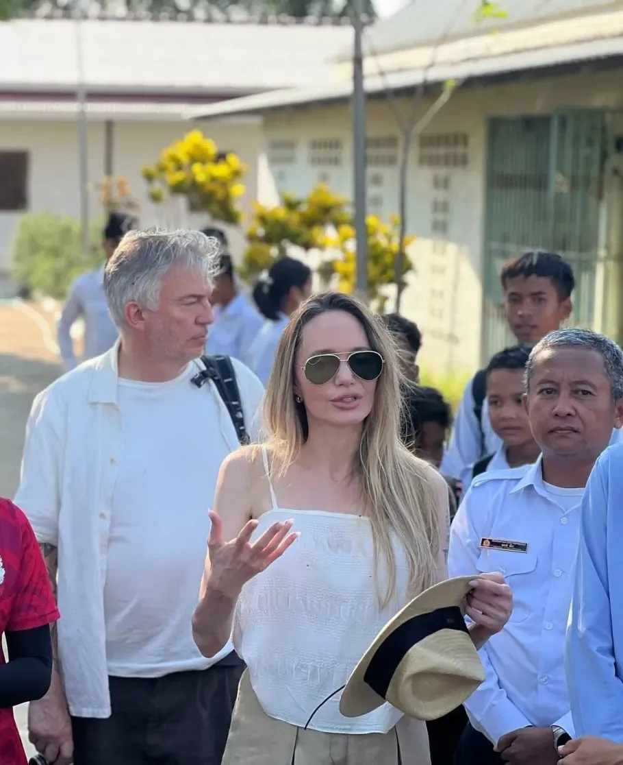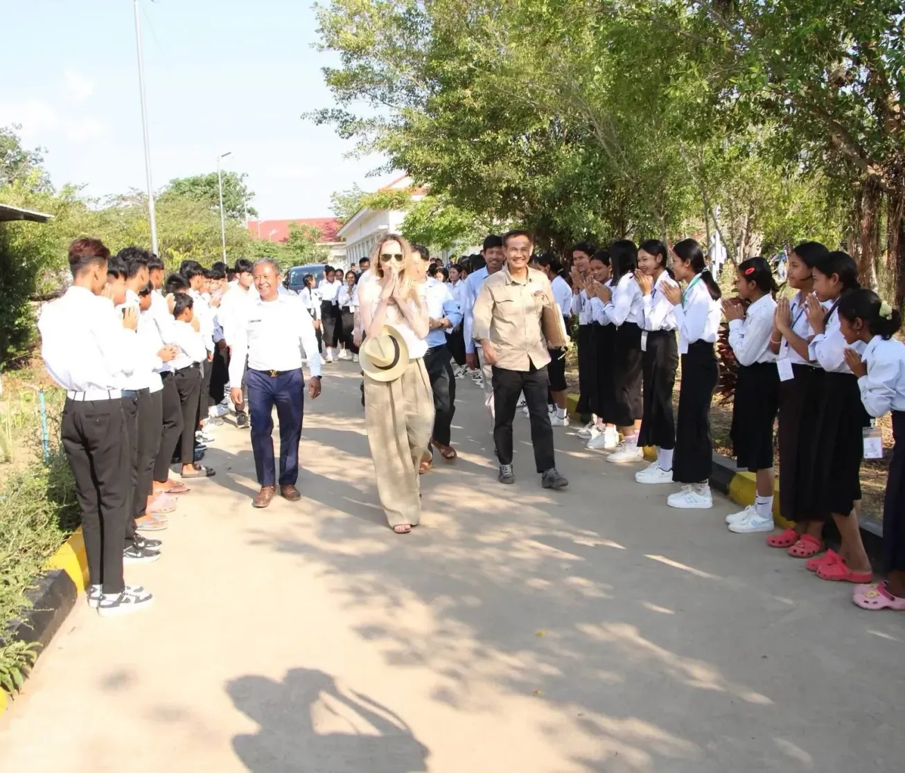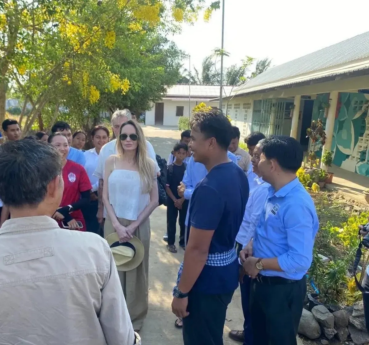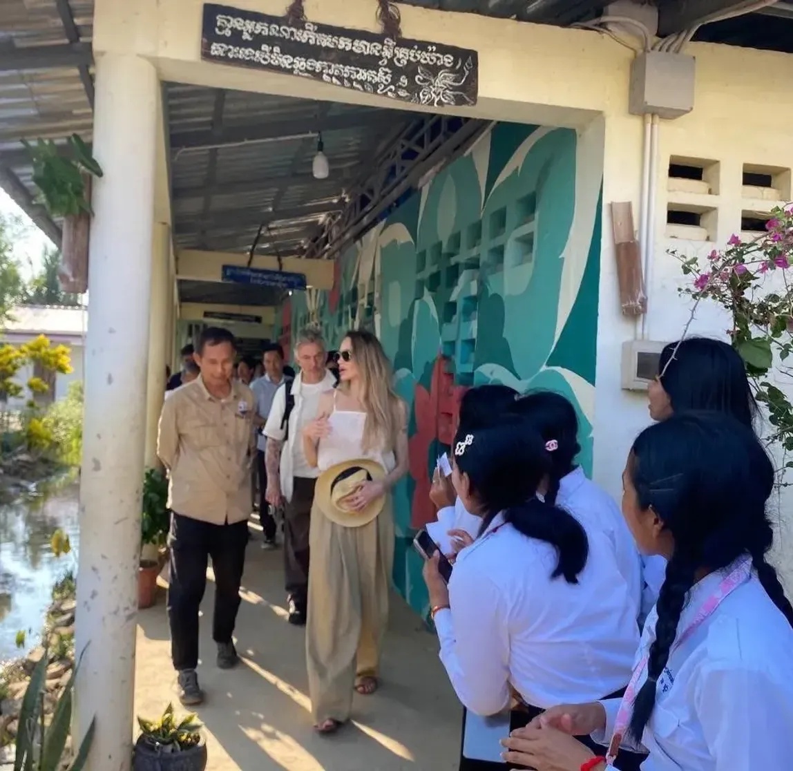 The 50-year-old actress visited Samlot Secondary School in the Battambang province, where she met with students and staff. During the visit, she observed classes and followed the progress of a dormitory being built for the ученики. The trip was officially acknowledged by Cambodia’s Ministry of Education.