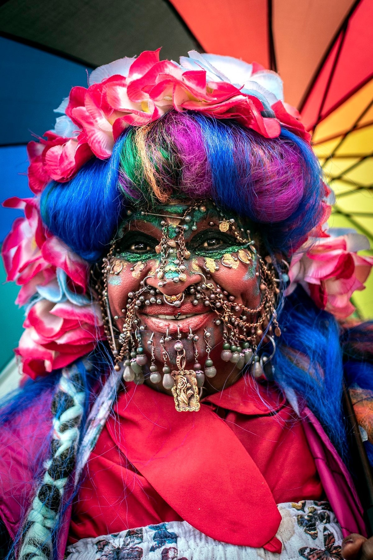 Over time, she has created a style that cannot be confused with any other: bright colours, glowing makeup, jewellery in many places, an image that is impossible to forget.