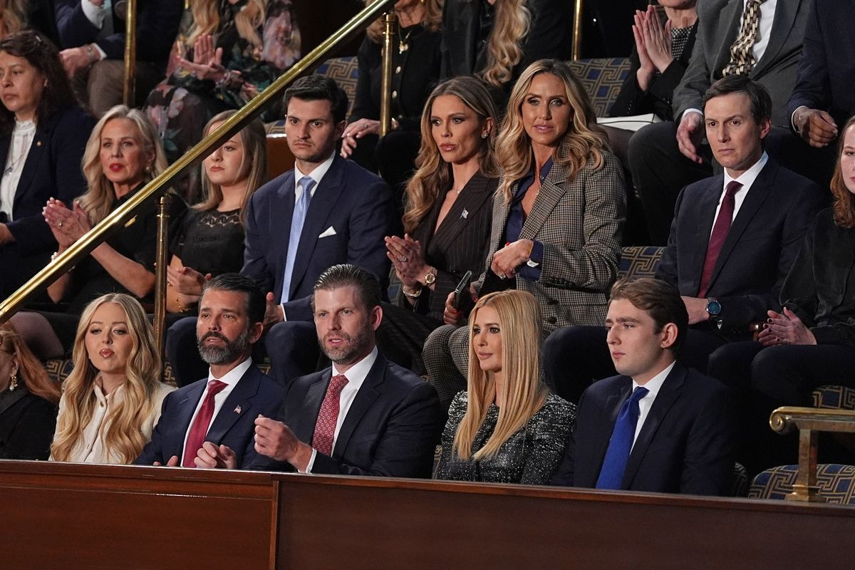 She appeared alongside her brothers and sister — Barron, Donald Jr., Ivanka, and Eric — for an uncommon moment that brought nearly the entire family together in one place. During the speech, Melania was positioned next to Barron in the audience, adding to the notable family presence in the chamber.