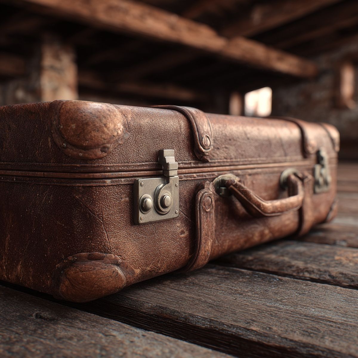 Inside, everything looked ordinary — boxes, books, folded blankets. Then I saw an old leather suitcase pushed against the wall.