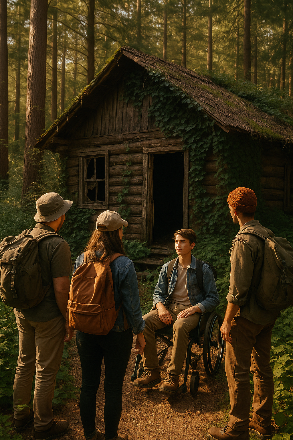We dropped the notebook and hurried out, slamming the door behind us. None of us spoke as we made our way back to the trail. The forest no longer felt peaceful — it pressed in on us, heavy and watchful.